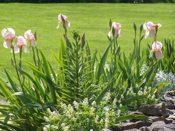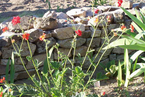Entre la terrasse Nord et le potager, une petite plate-bande s’étend au pied d’un muret de pierres sèches.