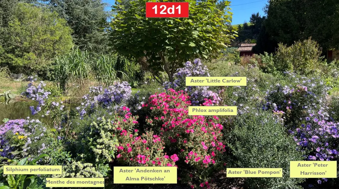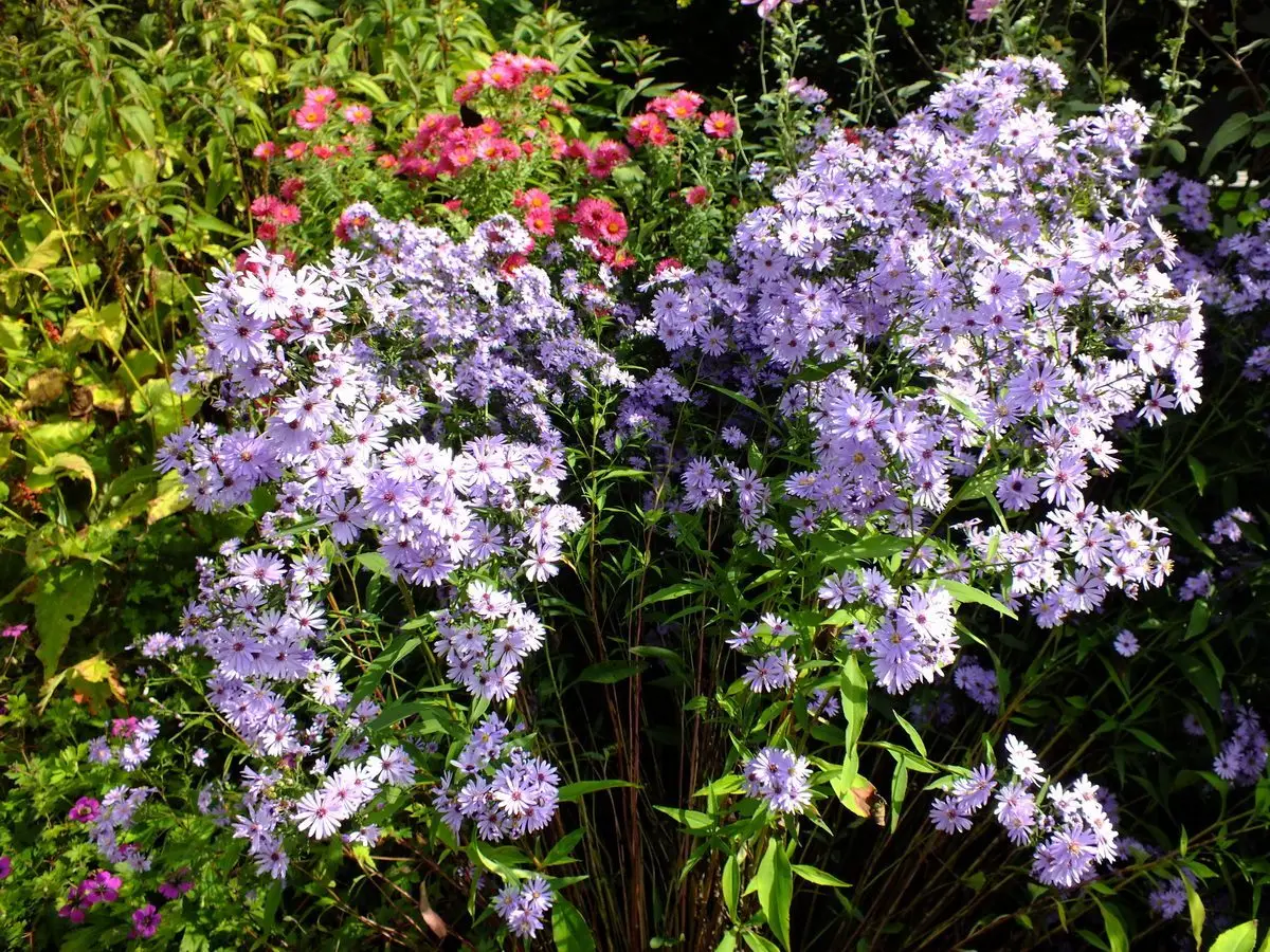 Il y côtoie plusieurs autres asters pour composer un tableau automnal riche en couleurs.
