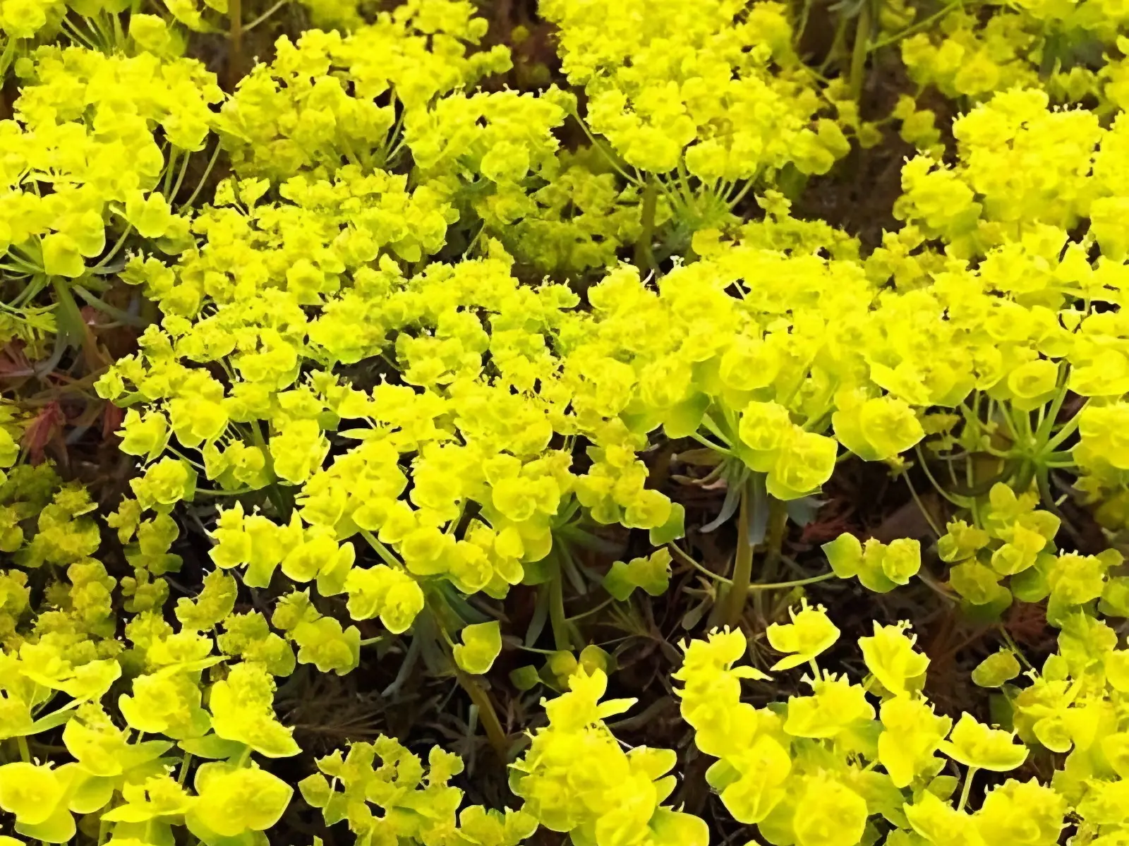 Euphorbe vivace basse formant des tapis souples de feuillage fin, illuminés au printemps par une floraison jaune intense. Parfaite pour rocailles et sols secs, très rustique et facile à cultiver.