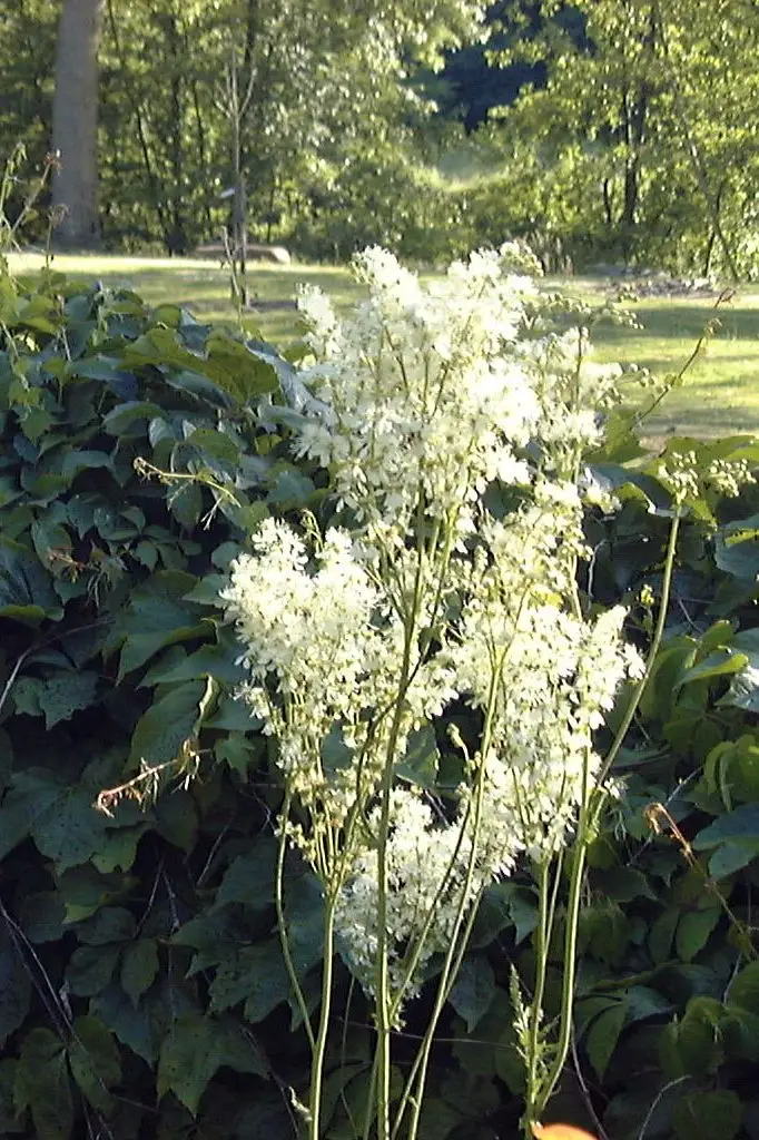 Dans le parc des Jardins du Gué, vous retrouverez de la reine des prés (Filipendula ulmaria) au bout du bief dans un emplacement qui reste longtemps humide et ombragé.