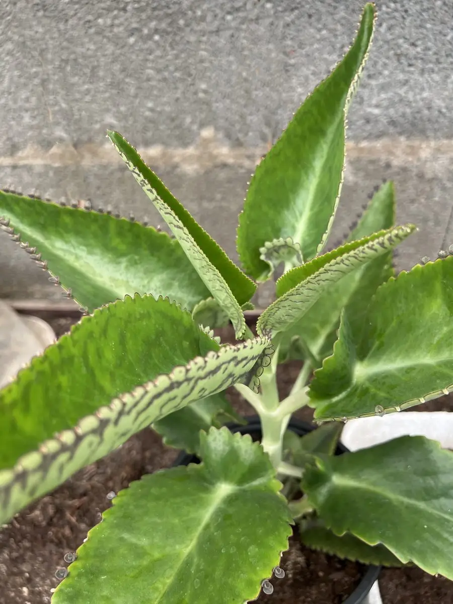 En effet, les feuilles ont un bord crénelé. Dans les indentations se développent de multiples propagules. Quand celles-ci tombent, elles s’enracinent et donnent naissance à un nouveau Kalanchoe.