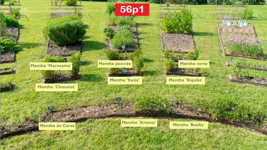 Comme chaque menthe a tendance à s’étaler, nous les avons placées dans des cases, séparées par de petites allées tondues.