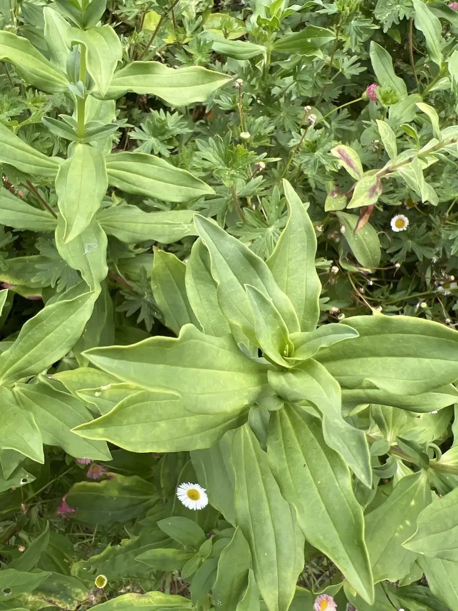 Les feuilles vert tendre sont glabres, ovales et pourvues de 3 nervures parallèles. Elles sont opposées sur une tige cylindrique solide.