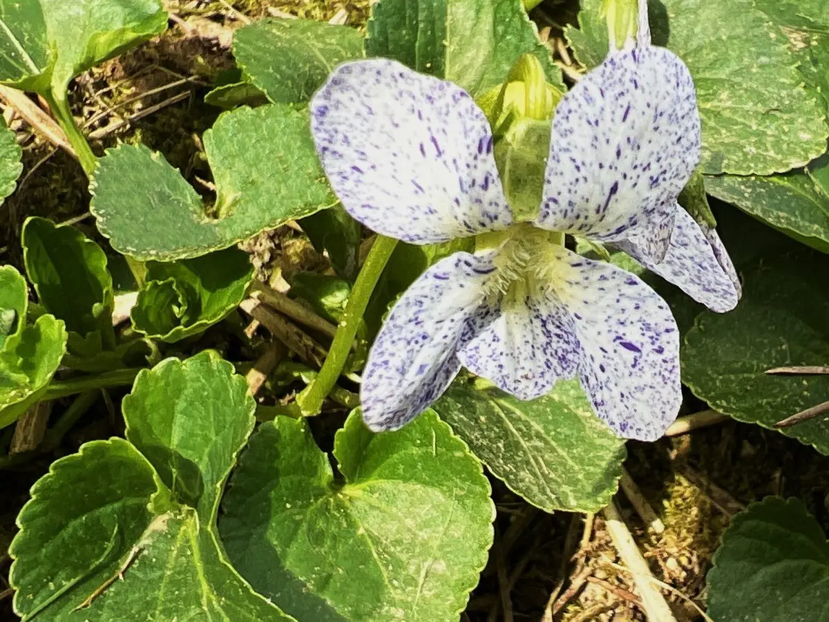 Viola sororia ‘Freckles’ est une violette et fait donc partie de la famille des Violacées, comme les pensées. Ces dernières se distinguent des violettes par le positionnement des pétales.